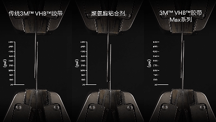 3M™ VHB™ Max胶带系列拥有3M™ VHB™ 胶带的所有优点,并能实现卓越的粘接强度:
