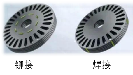 ◉ 永磁电芯的制造过程中,经分条、冲片后通常采用铆接、焊接、或自扣式压装等方式组装成铁芯,然而焊接固定法会造成铁芯边缘短路、绝缘性下降和热变形 造成磁特性变差 等问题。