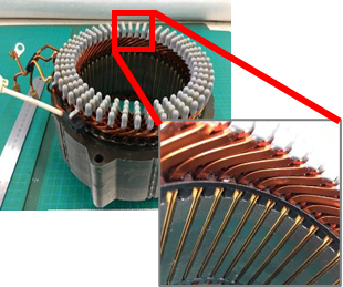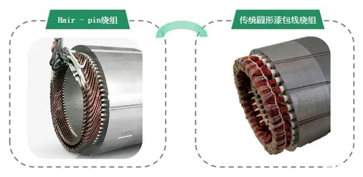 除了电动机电芯,电机的整体结构还有很多部位使用胶粘剂。比如在新能源汽车领域得到了广泛应用的新型扁线电机,它采用扁平形状的铜导线(Hair-Pin)绕组来代替传统的圆线导线。扁线电机的结构紧凑、重量轻、转矩密度高,可以有效地提高电动机的效率和性能。