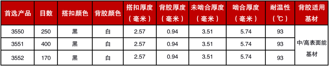 1.作为长期性能评估的一个起始点,建议250目搭扣与250目搭扣相啮合。