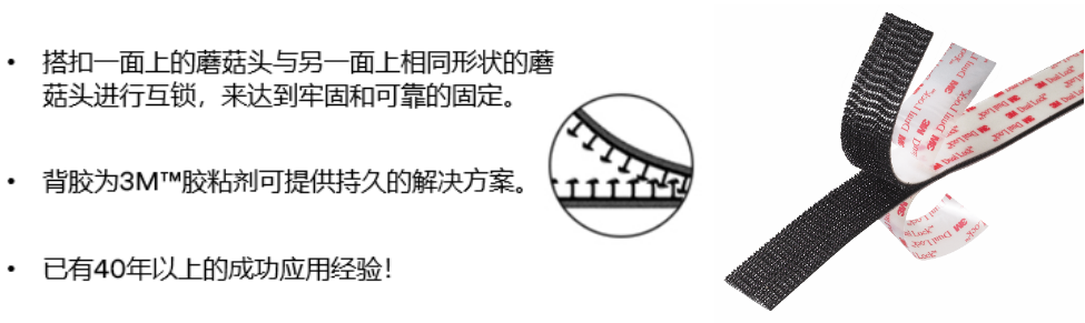 使用工业用胶粘剂3M™蘑菇搭扣的优势:可拆卸,可返修,固定方便