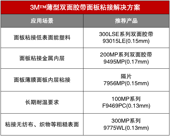 3M™薄型双面胶带以其丰富的产品线和优质的性能,提供完整的面板粘接解决方案,被广泛用于各行各业的设备中。