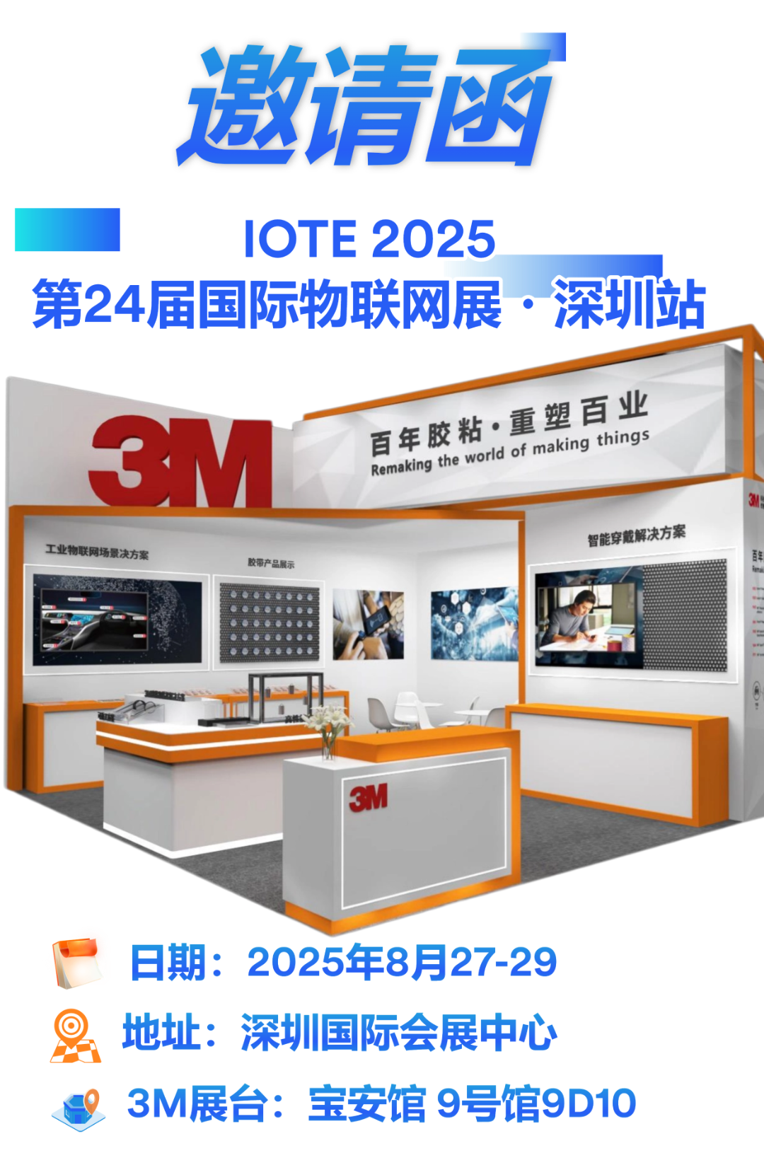 3M诚邀您参加2025年8月27-29日在深圳国际会展中心(宝安新馆)举办的IOTE 2025第24届国际物联网展・深圳站。届时,欢迎前往 深圳国际会展中心(宝安馆)9号馆9D10 ,与我们一同探讨物联网行业前沿趋势、发展方向,探寻合作机会,静候您的光临!